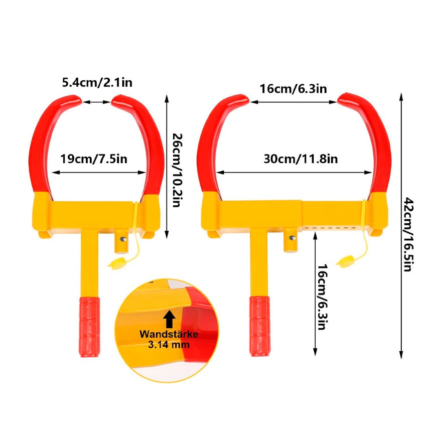 Gracias a su diseño expandible, esta cerradura se adapta perfectamente a ruedas de 7 a 11 pulgadas de ancho. Puedes usarla en camionetas, remolques, motocicletas, caravanas, e incluso en vehículos recreativos, ofreciendo seguridad real sin importar el tipo de vehículo.